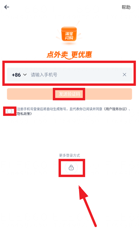 进入登录界面后,勾选未注册手机号登录后将自动生成账号,且代表你已阅读并同意《用户服务协议》《隐私政策》,输入手机号,点击发送验证码获取验证码登录即可,还可以点击更多登录方式,使用手机/账号,密码登录