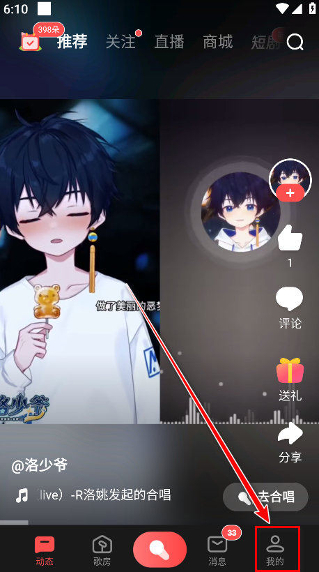 1.打开全民k歌,点击右下角我的。