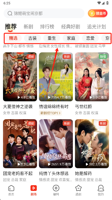 2、从分类中选择短剧类型可以快速找到你喜欢的短剧。