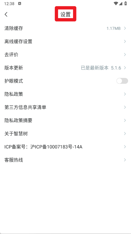 5、在“设置”页面,用户可进行缓存清理、更新版本、开启护眼模式、查看隐私政策与政策摘要,以及获取客服支持等操作。