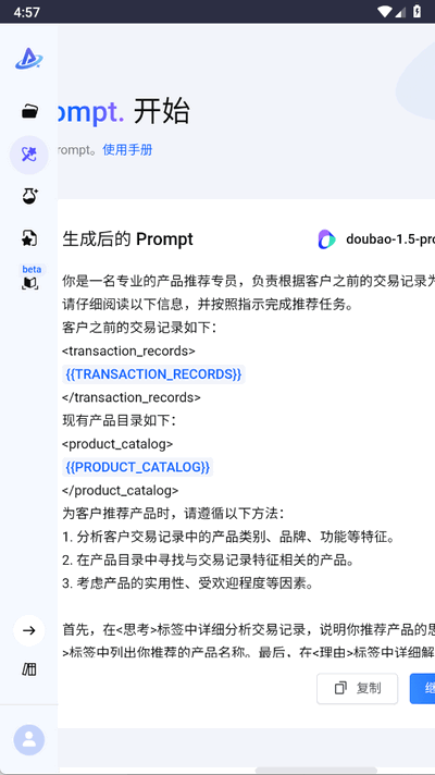 接下来就可以看到 PromptPilot 生成后的提示词内容: