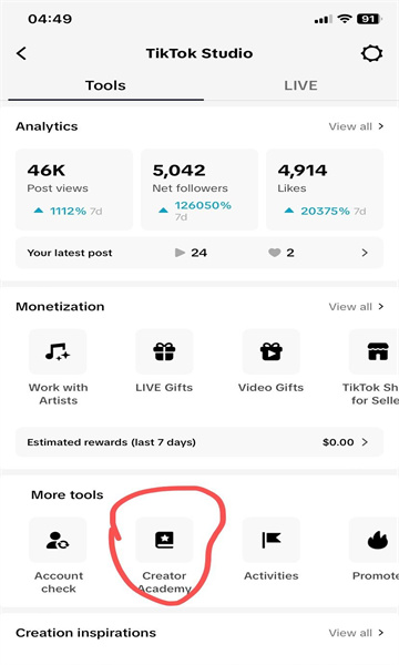 1、进入账号主页,在账号Bio下方会有个Tiktok Studio(或者你点击右上角三条横线“三”或者三个点就可以看到)。