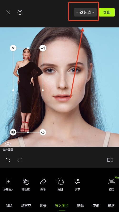 1、制作完一个图片后,点击右上角的一键超清功能。
