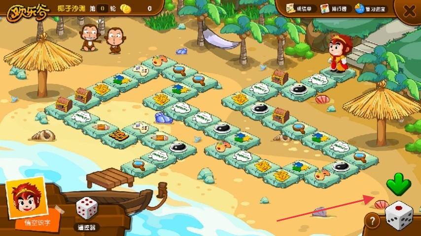 3、是识字闯关玩法,孩子通过掷骰子前进,触发识字任务,在椰子沙滩等情境中,边玩边巩固识字,让学习趣味十足。